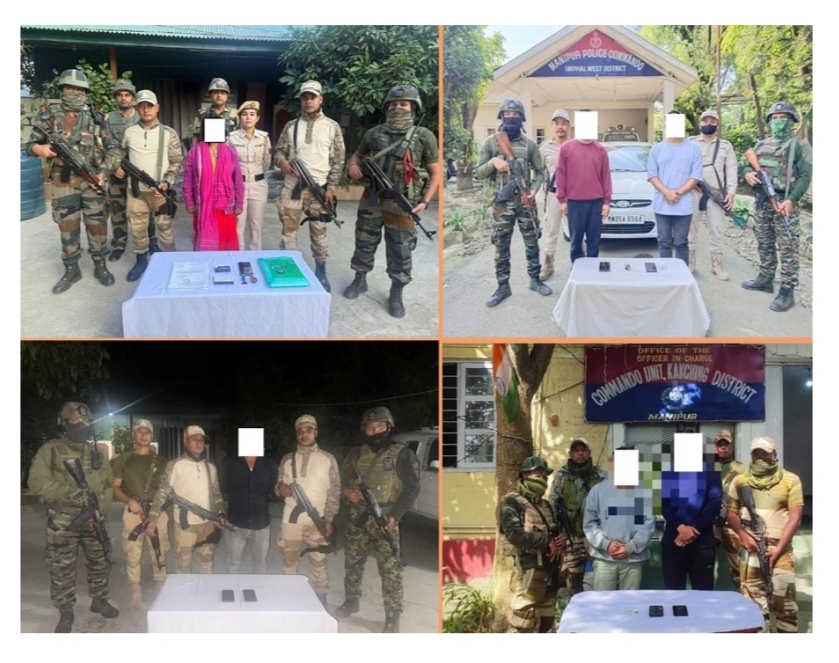एक अन्य अभियान में काकचिंग जिले के हियांगलाम तेरापिशाक सेकमाइजिन इलाके में कांगलीपाक कम्युनिस्ट पार्टी (एमएफएल) के दो निलंबित कैडरों को भी पुलिस ने गिरफ्तार किया है। दोनों की पहचान एलंगबाम लाम्यानबा मेइतेई (29), जिसे अबुंगचा के नाम से जाना जाता है और लैशराम इंद्रकुमार सिंह (25) के रूप में हुई है। दोनों पर कथित तौर पर जबरन वसूली के कामों में शामिल होने का आरोप है। पुलिस ने उनके पास से दो मोबाइल फोन और एक आधार कार्ड बरामद किया।